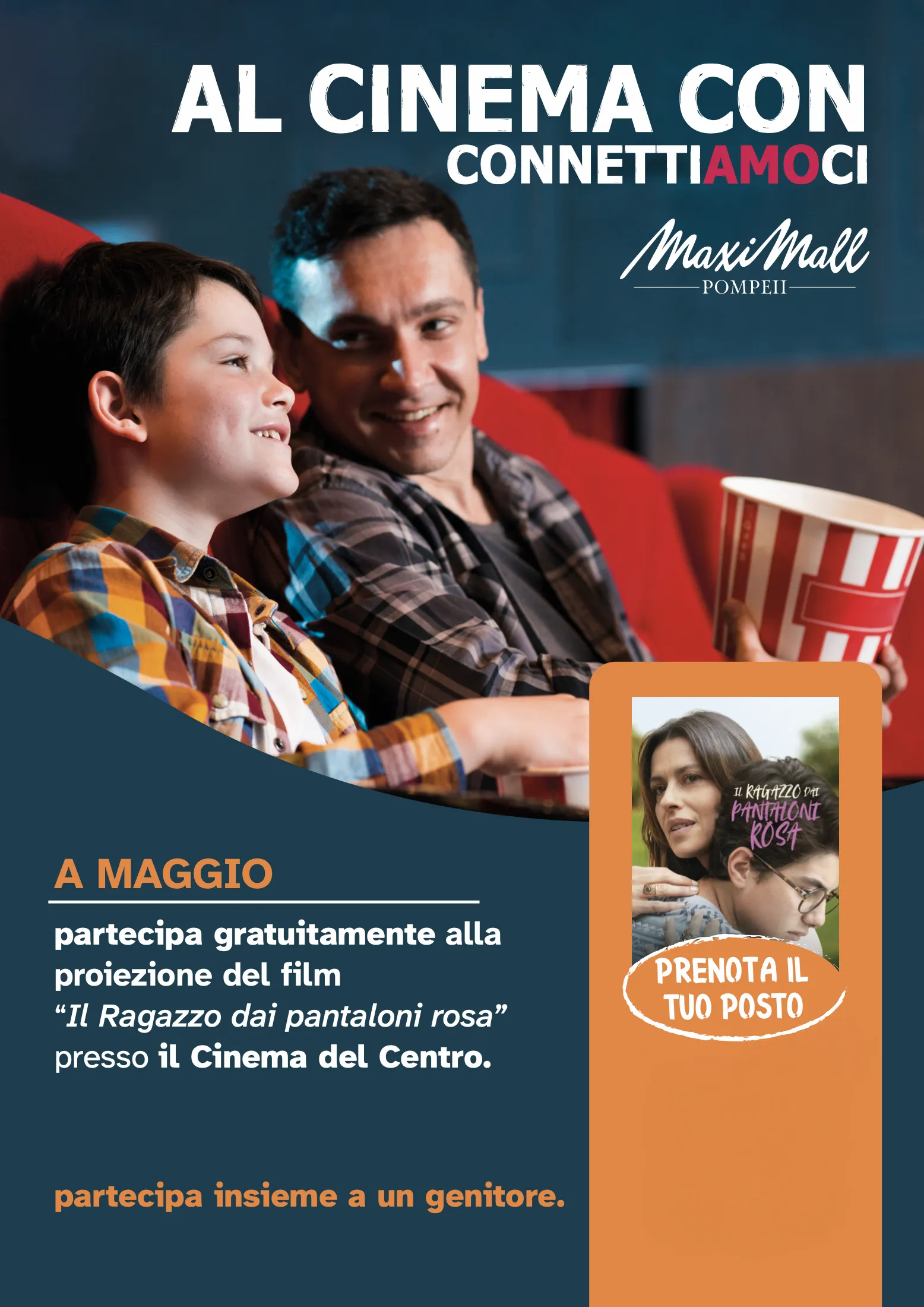 Il percorso culmina con un evento speciale presso il cinema del centro commerciale: la proiezione gratuita del film “Il ragazzo dai pantaloni rosa”, seguita da un momento di confronto con psicologi ed esperti, pensato per coinvolgere insieme genitori e figli.